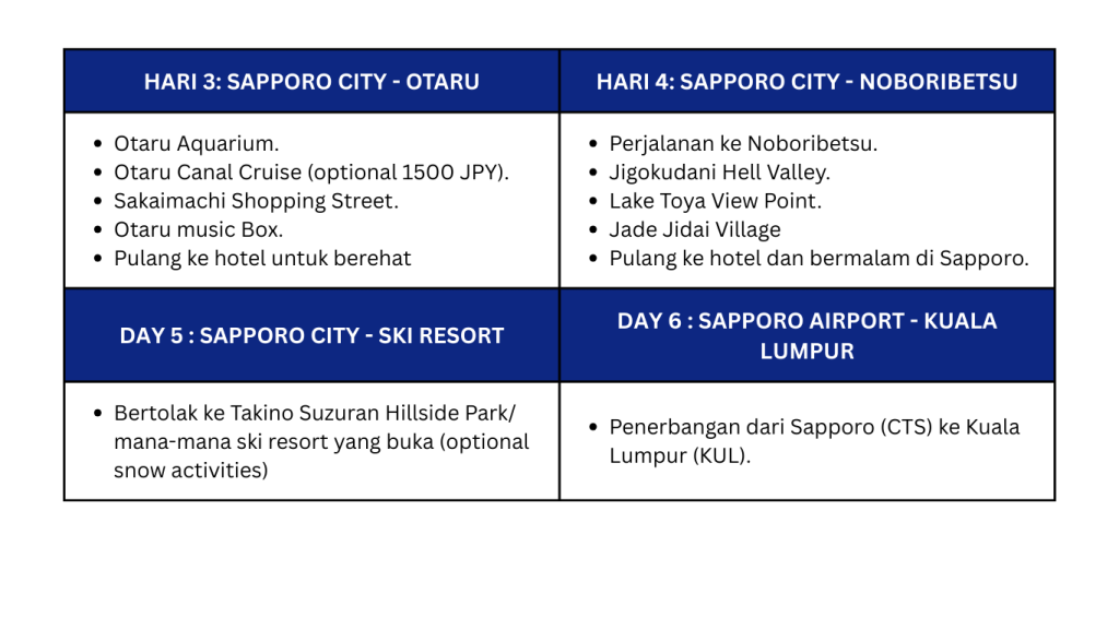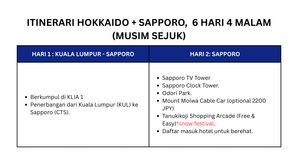 *** ITINERARI & PROGRAM TRIP ADALAH BERBEZA MENGIKUT MUSIM, UNTUK MAKLUMAT LANJUT SILA RUJUK BROSUR JUALAN ATAU HUBUNGI KAMI