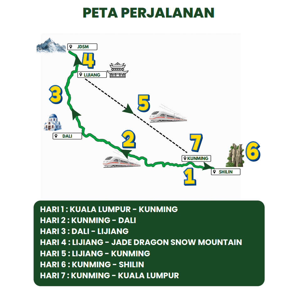 Trip akan dibimbing oleh tour leader Melayu Muslim beriman dan local tour guide yang berpengalaman di Yunnan.